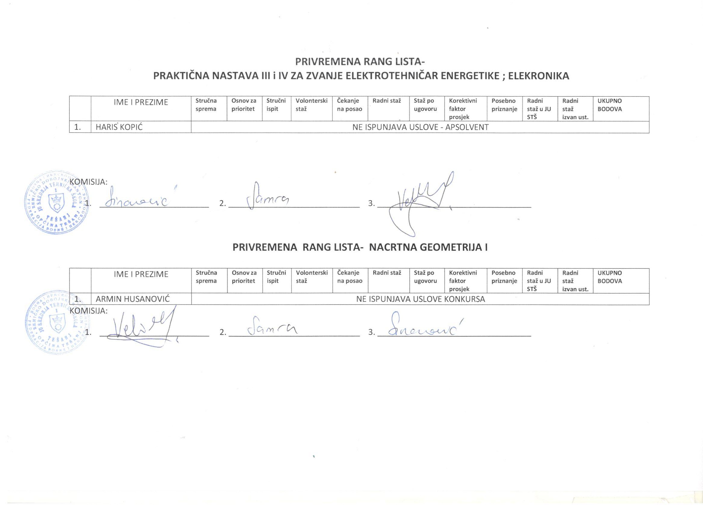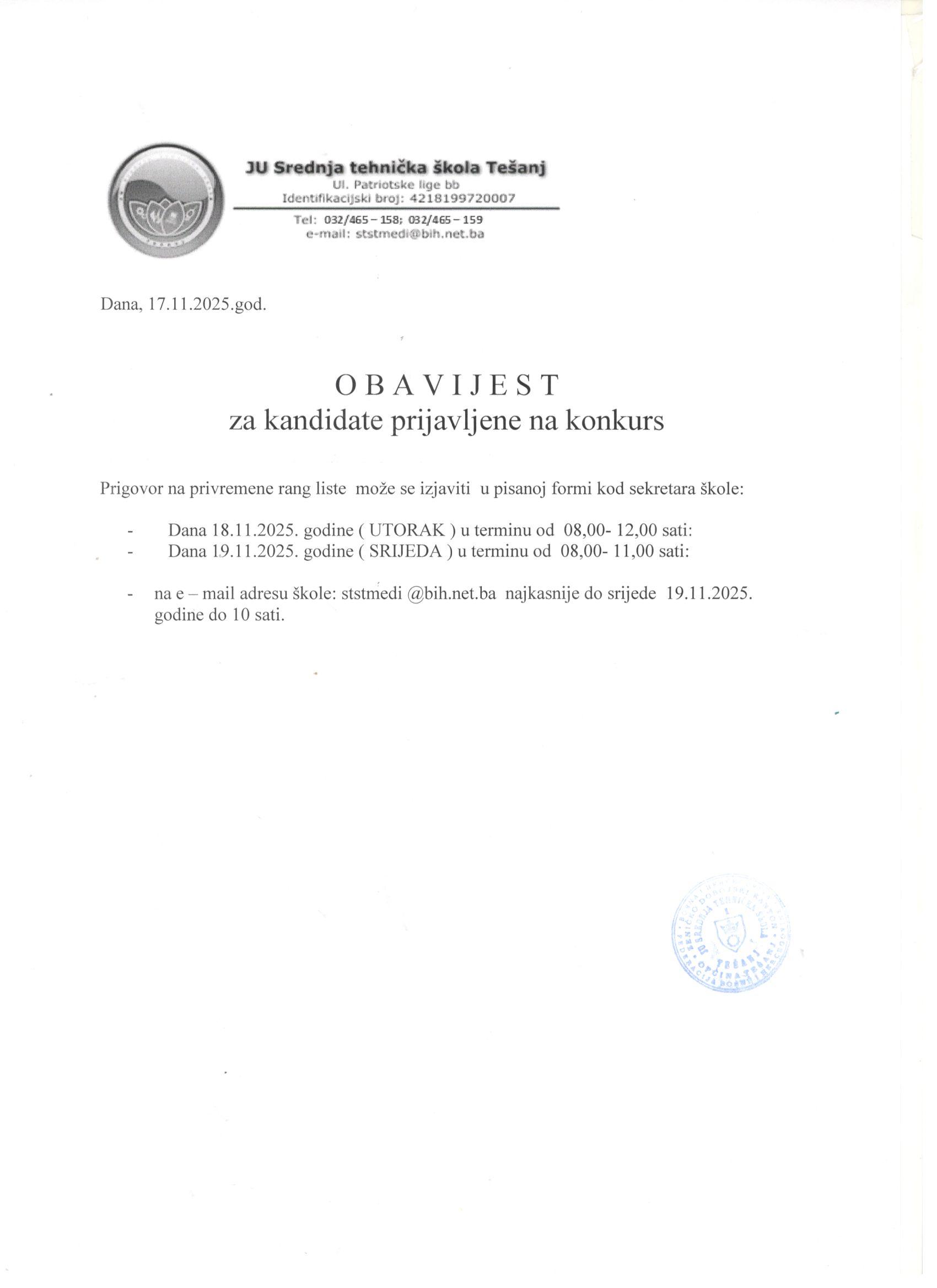 17 stu. 2025 OBAVIJEST ZA KANDIDATE – Privremene rang liste admin AKTUELNOSTI 0 Comment Objavljene su privremene rang liste po konkursu od 04.11.2025.godine.. Kandidati mogu ostvariti prava na prigovor u skladu sa Obavijest.
